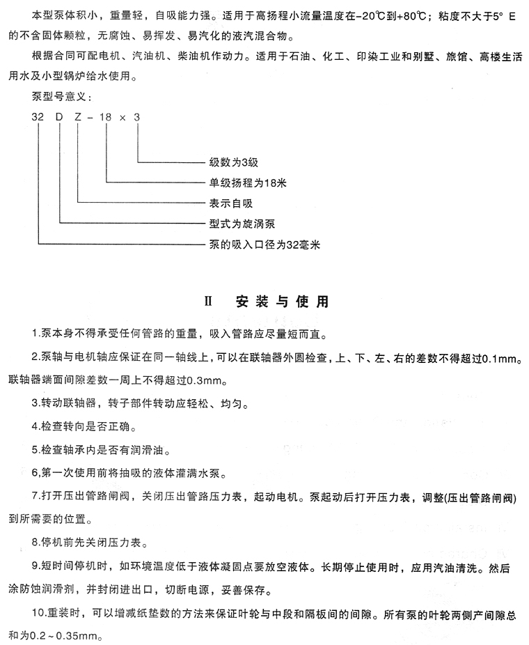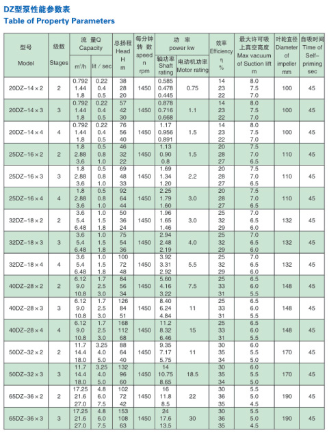 DZ不銹鋼桶用多級自吸泵工作性能表
