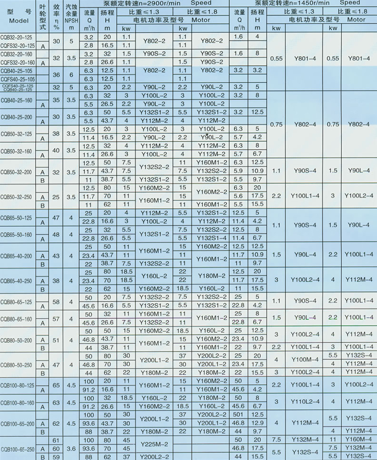 (1)CQFS系列采用全氟塑料增強(qiáng)合金制造功率在2.2KW以下)。