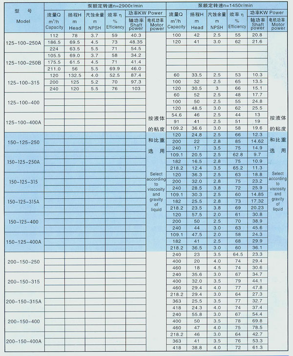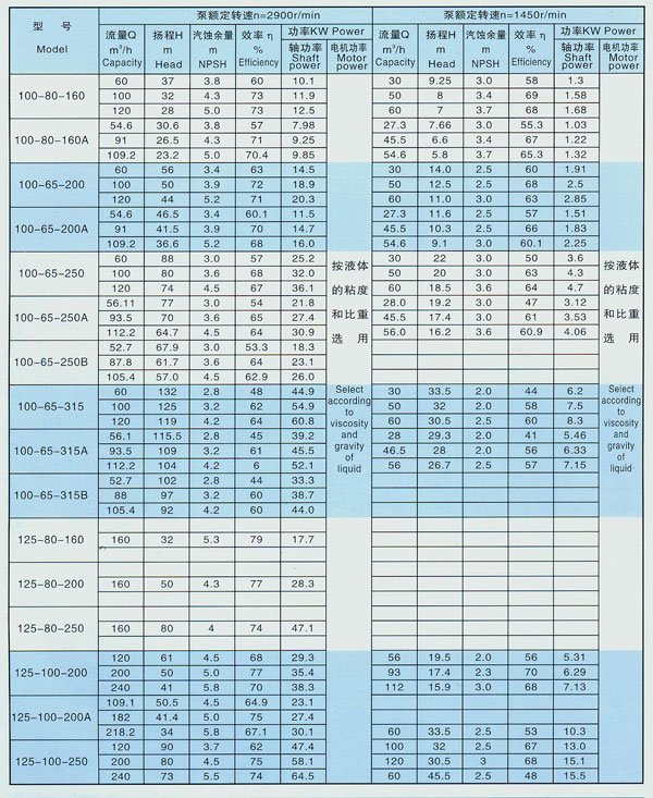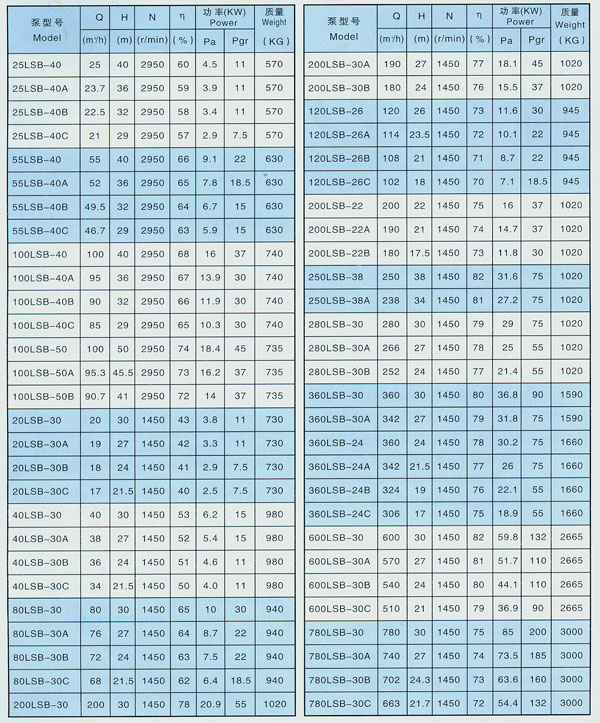LSB型高溫硫酸泵工作性能表