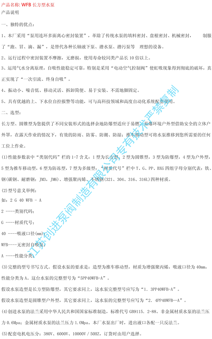 WFB長(zhǎng)方型水泵