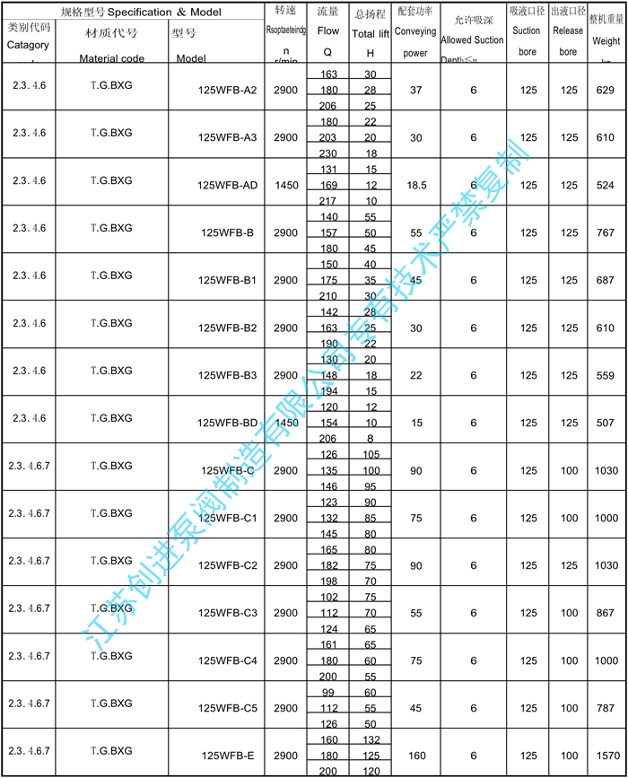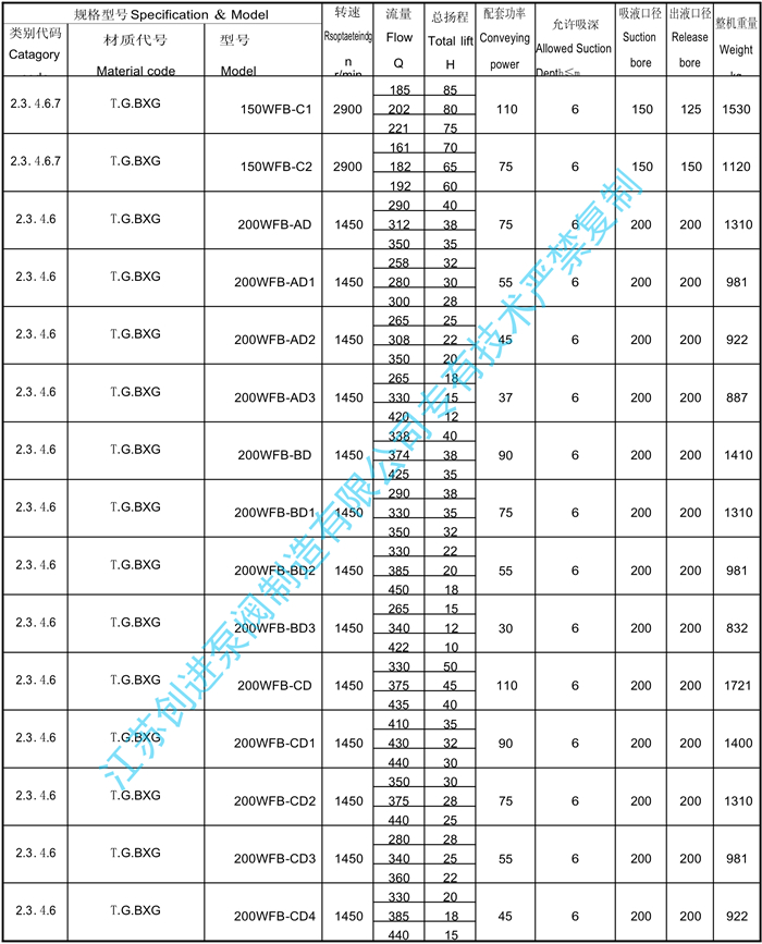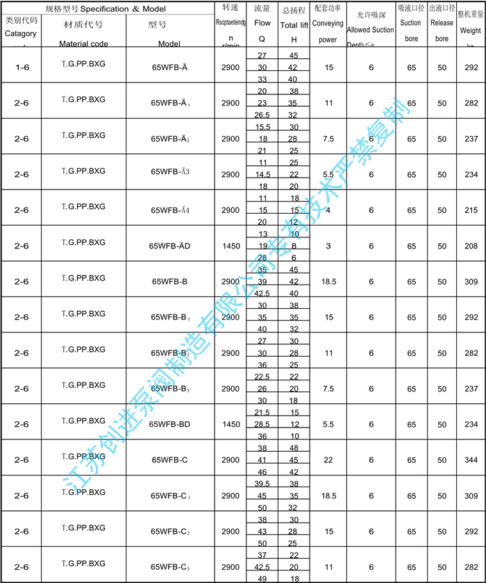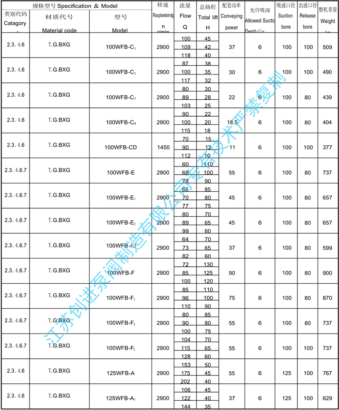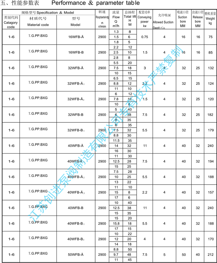 WFB系列無(wú)密封自控自吸泵工作性能表